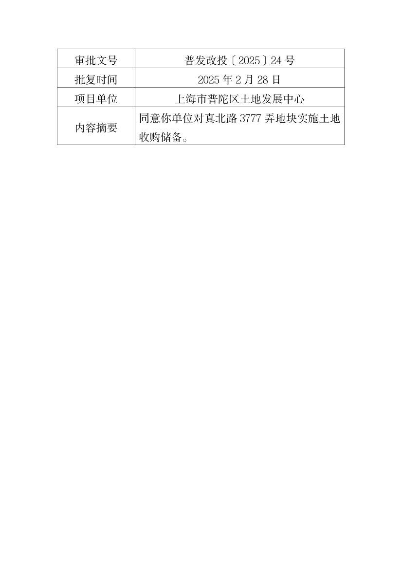 同意你单位对真北路3777弄地块实施土地收购储备。