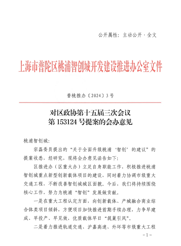 宗磊委员提出的“关于全面升级桃浦‘智创’的建议”的提案收悉,经研究,现将会办意见函告如下:
