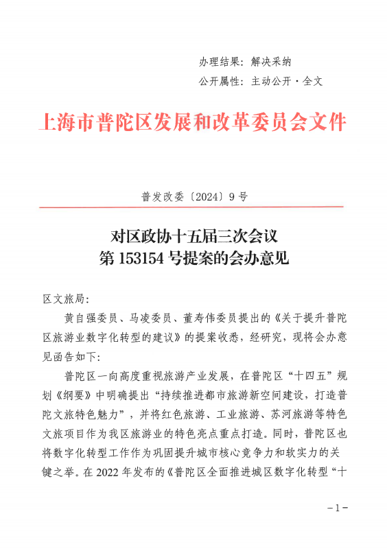 黄自强委员、马凌委员、董寿伟委员提出的《关于提升普陀区旅游业数字化转型的建议》的提案收悉,经研究,现将会办意见函告如下: