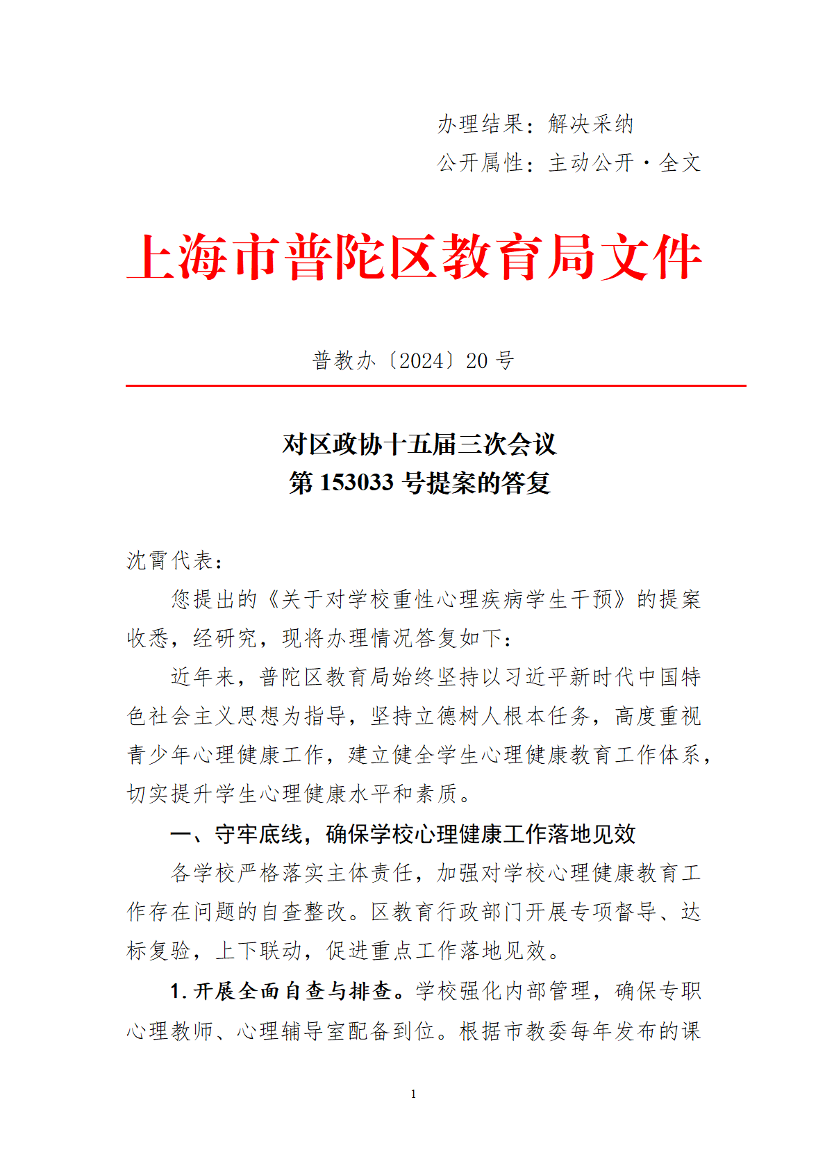 您提出的《关于对学校重性心理疾病学生干预》的提案收悉,经研究,现将办理情况答复如下:
