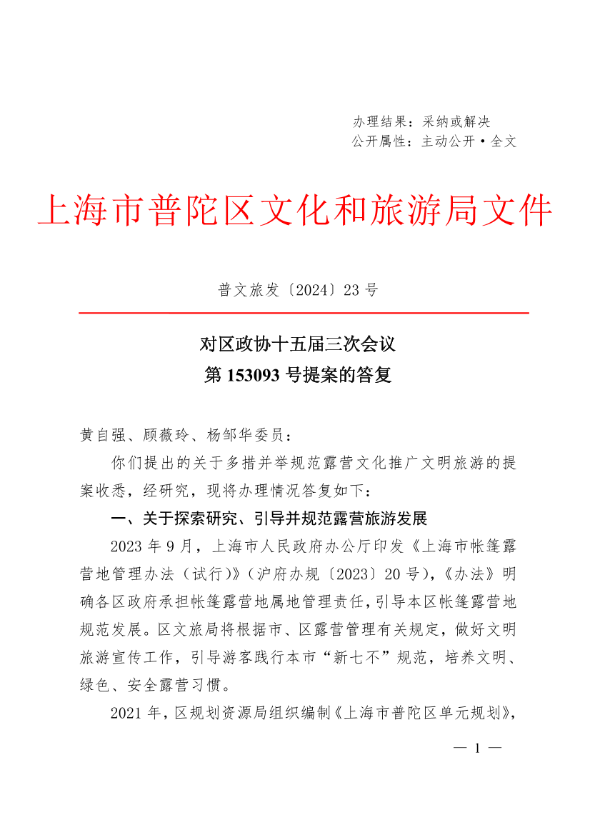 你们提出的关于多措并举规范露营文化推广文明旅游的提案收悉,经研究,现将办理情况答复如下: