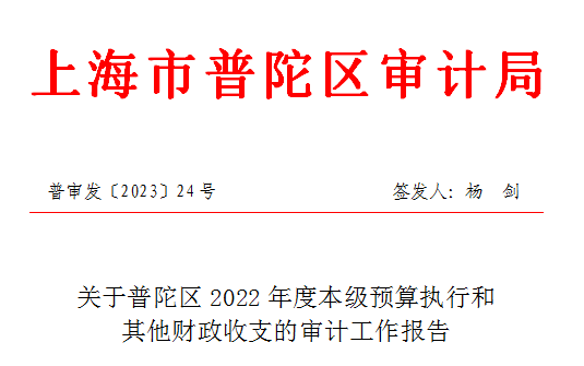关于普陀区2022年度本级预算执行和其他财政收支的审计工作报告