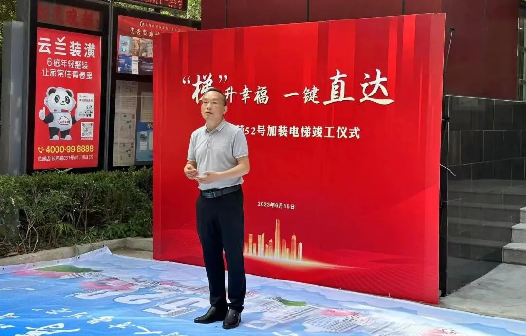 2023年06月15日 来源: 上海普陀6月15日上午 ,芙蓉花苑小区第6台既有多层住宅加装电梯工程竣工仪式在芙蓉花苑52号楼道前成功举办。