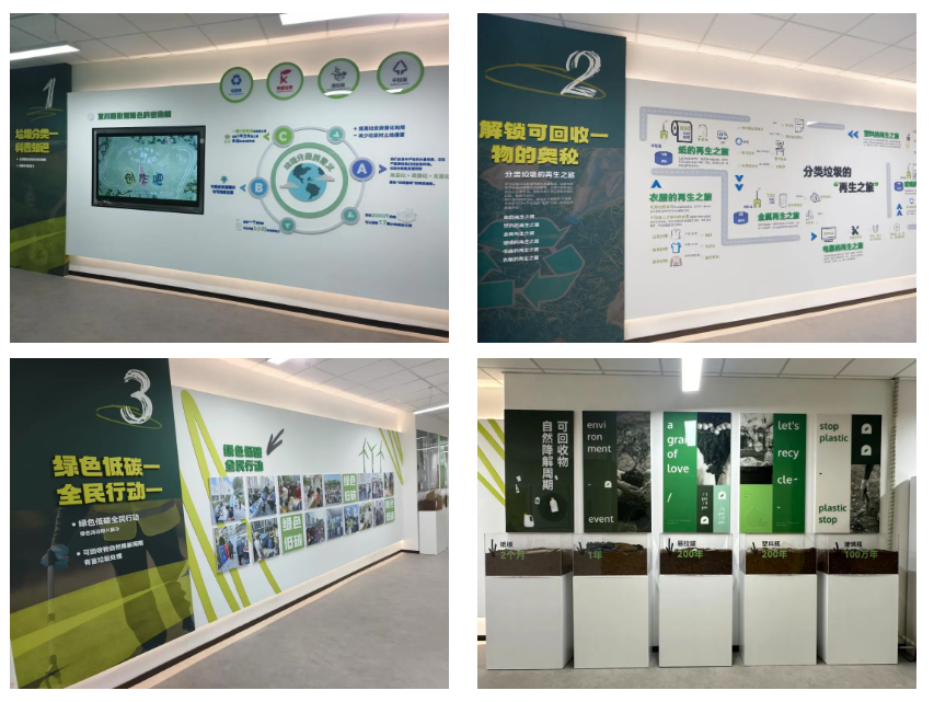 420惠民回收服务点作为宜川“宜起来分类”垃圾分类科普体验线路中的一抹亮色,既是居民进行可回收物便捷交投的环保驿站,也是供居民休憩娱乐的互动场馆,更是普及环保理念与分类知识的科教阵地。其采用“420”精细化管理模式:“4”,代表规范管理、精细分类、配套到位、爱心服务;“2”,代表时尚动感的设计、科普宣传的阵地;“0”,意为探索零碳未来,开创美好生活。作为兼具科普功能的综合性惠民回收服务点,其科普展示区域设有五大板块。居民可以漫步科普长廊,通过互动装置与科普文化墙了解垃圾分类投放、收集、运输、处置的全流程。作为环线内规模最大的商品房小区,中远两湾城在垃圾分类工作上存在主体多元、诉求多样、矛盾多发等问题。在420服务点,可以看到这个超大型社区积极探索垃圾分类治理新路径的全过程。420惠民回收服务点的设立,也补全了中远两湾城在可回收物精细化管理体系的“拼图”。