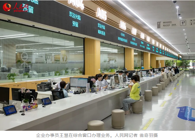 “您好,员工的就业创业证,这里可以办理吗?”在上海普陀区政务服务中心办事窗口,见记者采访许玉昆,正在为企业办理分支机构登记(备案)申请的王慧插空问道。