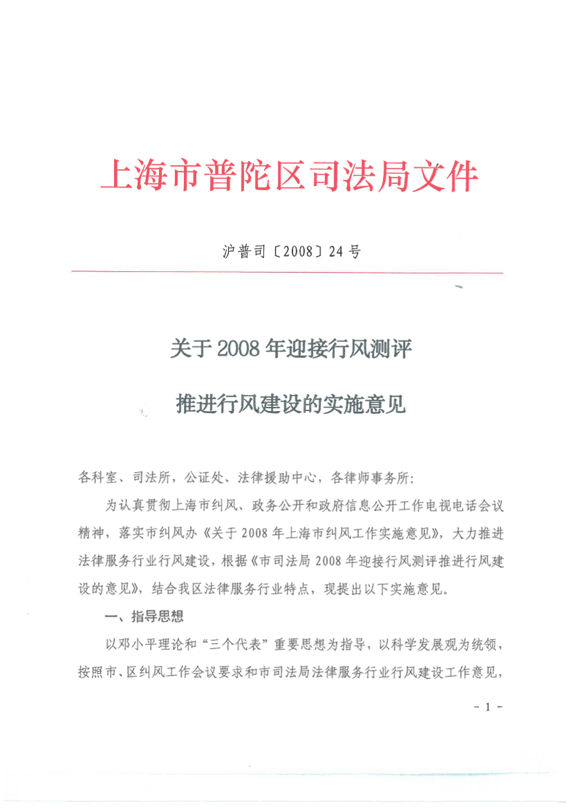 为认真贯彻上海市纠风、政务公开和政府信息公开工作电视电话会议精神,落实市纠风办《关于2008年上海市纠风工作实施意见》,大力推进法律服务行业行风建设,根据《市司法局2008年迎接行风测评推进行风建设的意见》,结合我区法律服务行业特点,现提出以下实施意见。