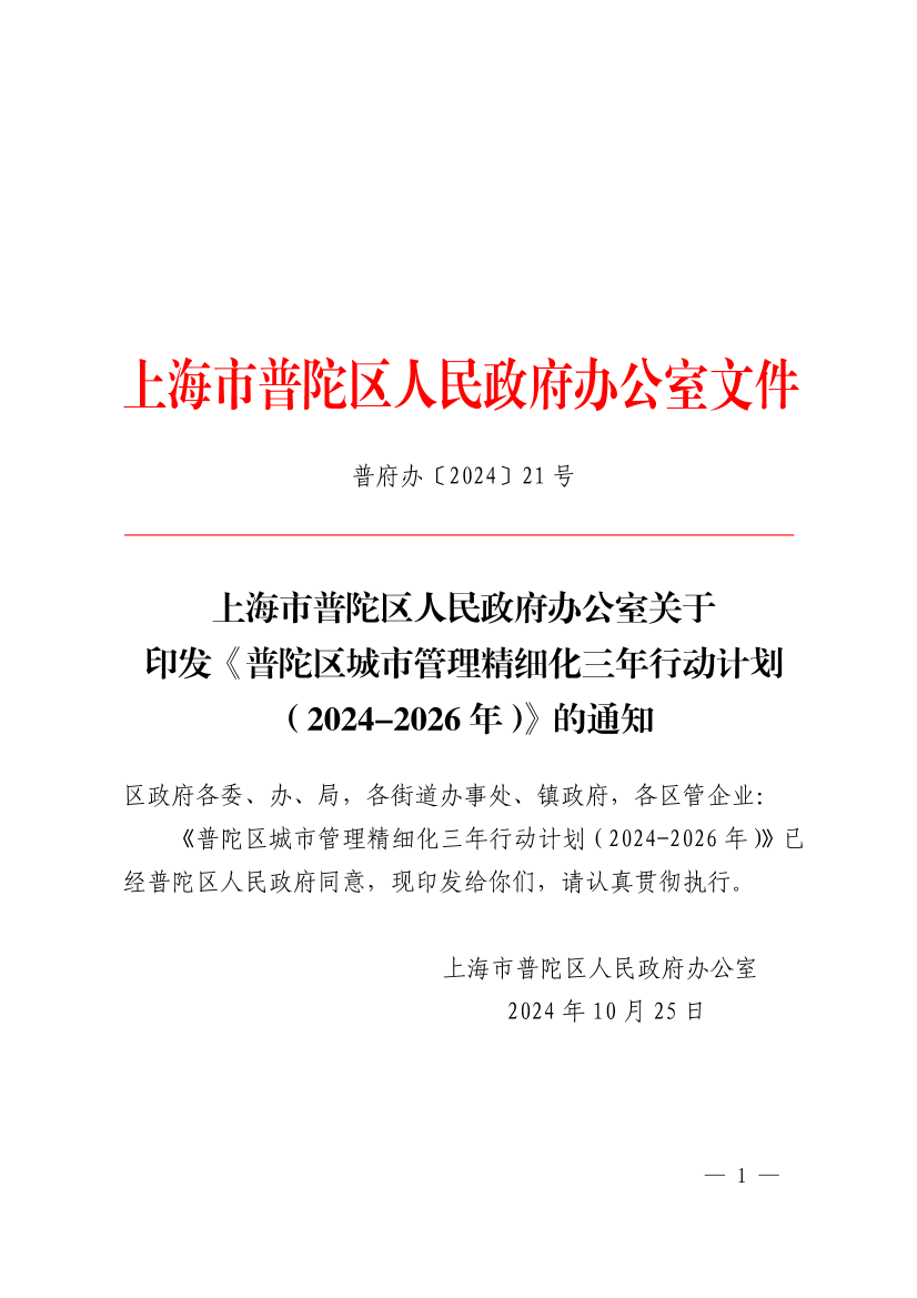 上海市普陀区人民政府办公室关于印发《普陀区城市管理精细化三年行动计划(2024-2026年)》的通知