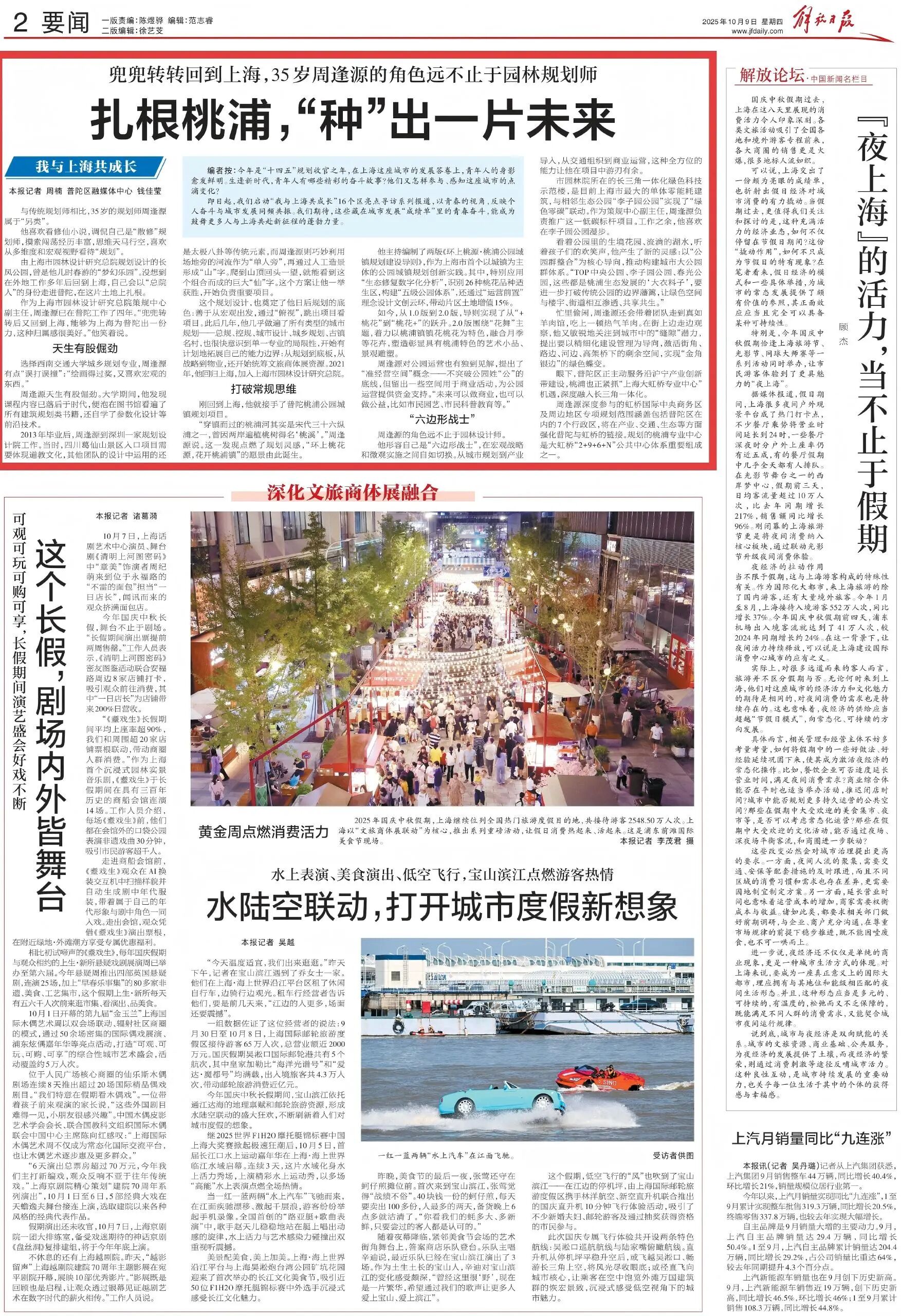 10月9日,《解放日报》头版和2版要闻报道:扎根桃浦,“种”出一片未来