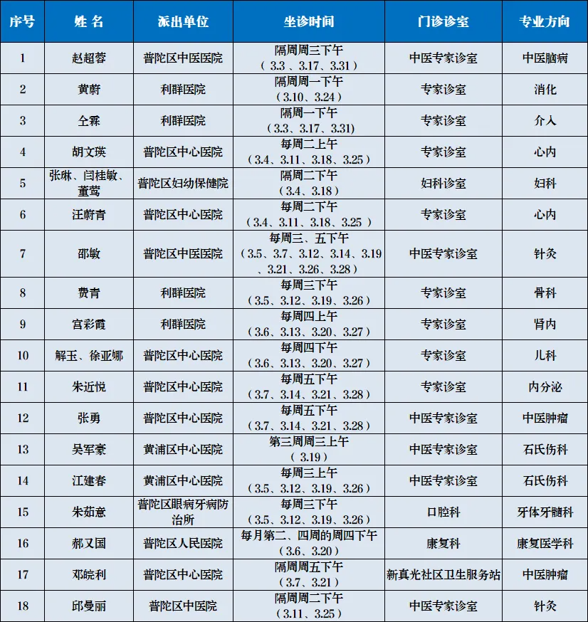 3月份,真如镇街道社区卫生服务中心,专家门诊安排来啦!满足社区居民更专业、更便捷、更优质的医疗保健服务。
