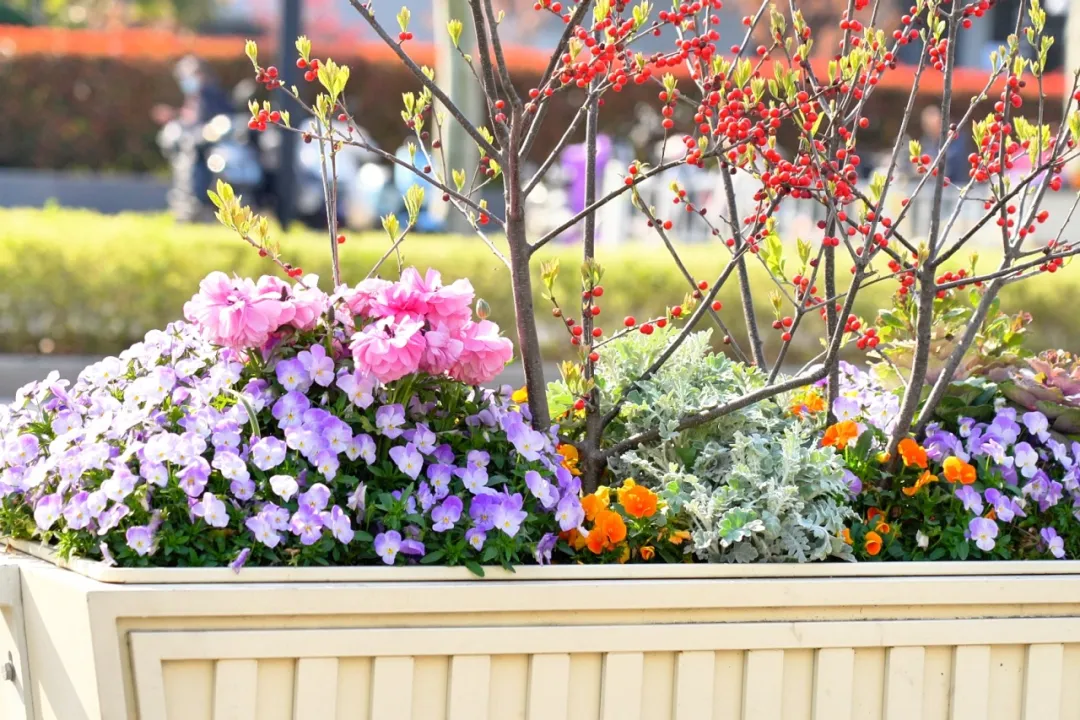 花坛里的花朵安静盛放着,不必刻意去寻找,春意就藏在这条再熟悉不过的街道里。