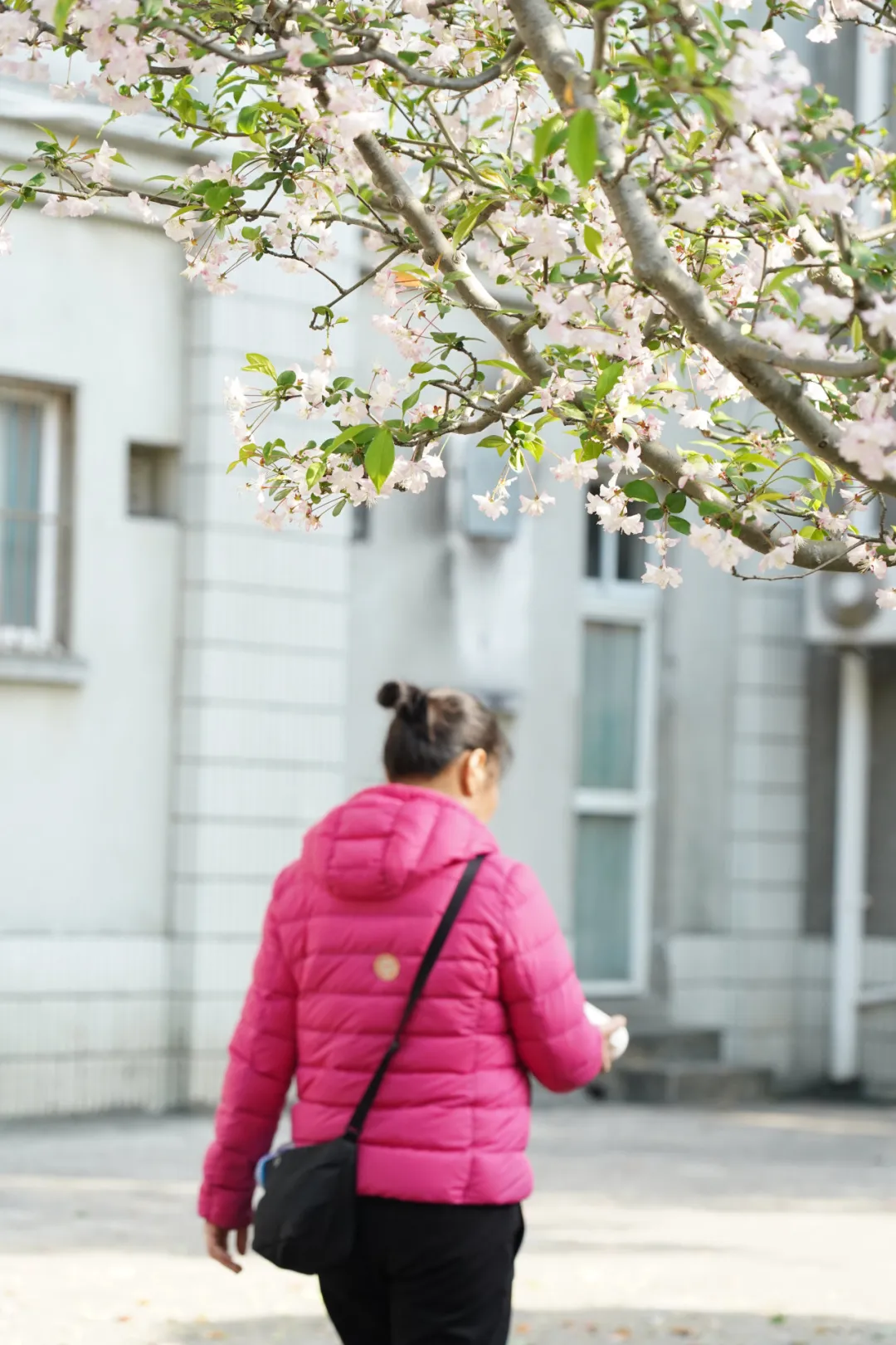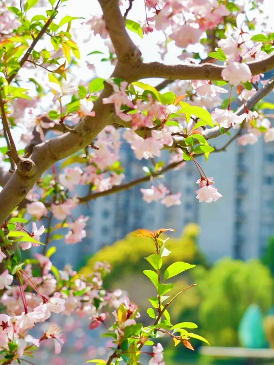 海棠花和紫荆花交织在一起,将道路两旁染成了粉红色,空气里似乎也漂浮着浅粉色的芬芳,连呼吸都染上了春日的清新。