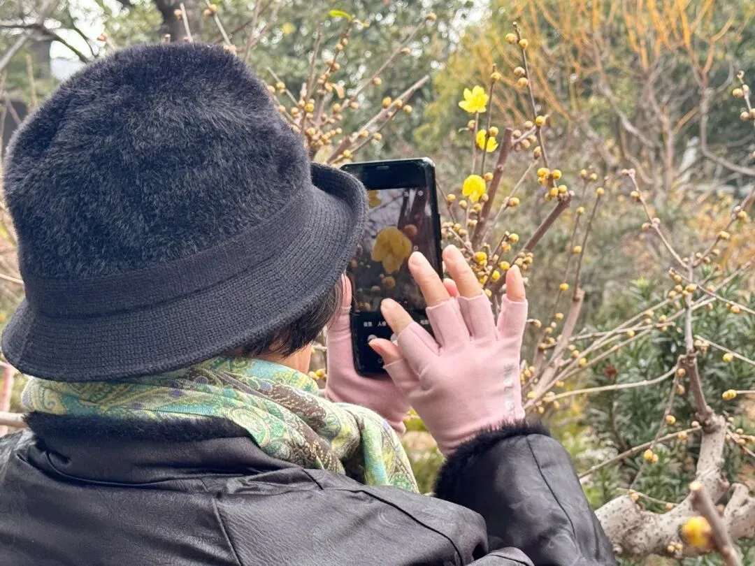 正在园中散步的市民王武表示,每年都会和全家人一起来真如公园看蜡梅:“每次闻到这个香味都觉得非常治愈,现在相信‘公园20分钟效应’了,逛一圈下来心情真的放松了不少。”另一位摄影爱好者张凯华则在一株蜡梅前架上了相机,频频按下快门:“这段时间光线柔和,映得花色透亮,拍出来就特别有古典韵味。”游客们的交谈声、笑声与清雅的梅香交织,让公园在冬日里显得温暖而生动。