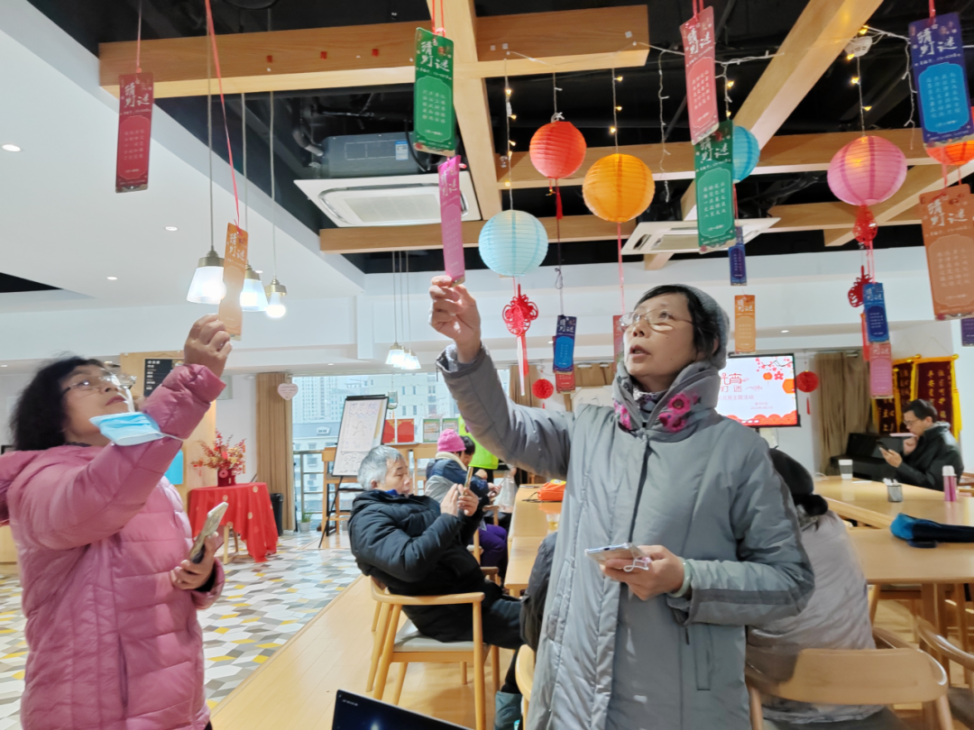 活动现场充满了浓浓的节日氛围。大家一起参加了有奖猜灯谜环节,在一片欢声笑语中展示智慧和才华;庆元宵戏曲汇演中,戏曲达人穿上精致考究的服装、戏服,用美好婉转、富有传统艺术特色的戏曲汇演,共同欢庆元宵佳节;工作人员与志愿者们将寄托浓浓爱心汤圆送到高龄老人、快递小哥、户外职工手上,传递满满的温暖和祝福;独家开发的元宵儿童绘本阅读拓展课程《团圆》,让孩子们从元宵节活动中体会团圆的意义。
