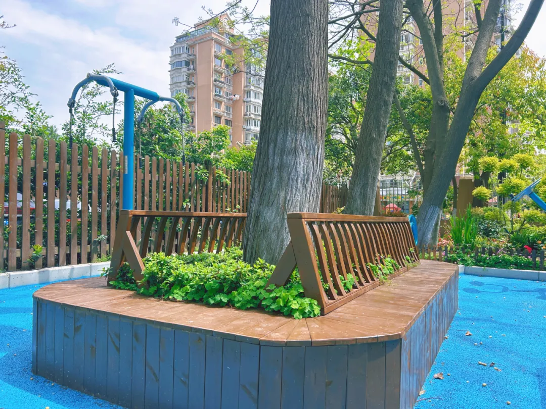 焕然一新的健身器材、修剪平整的阳光草坪、精心搭配的自然花境,充满童趣的羊驼小景,令人应接不暇。还新增了环形座椅供居民们日常交流、休闲歇脚;建成一条“小径”,兼具美观和实用功能。整体来看,不仅比之前“养眼”多了,而且绿化景观更加精致、空间布局更加优化,打造出一个融合绿色生态、活动共享的新空间,成为了居民们常来爱来的家门口好去处。