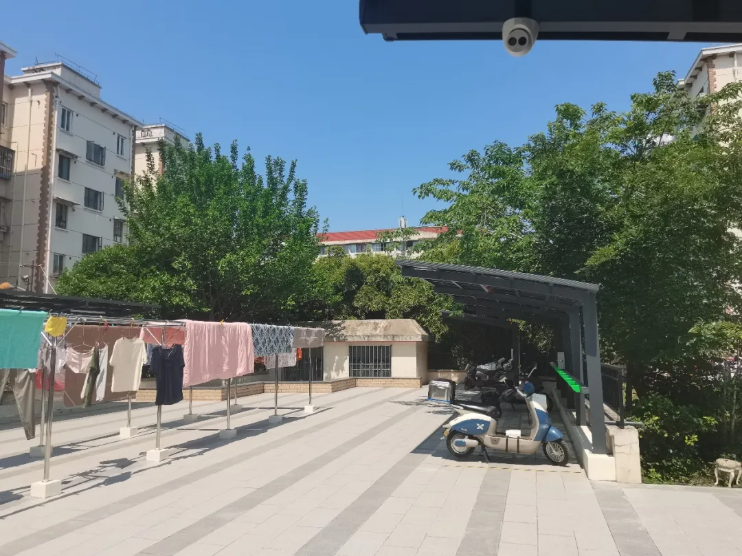 据真光四居民区党总支书记米兰介绍,新车棚位于小区配套车库顶层,原本是个废弃的篮球场,由于年久失修,塑胶地面坑坑洼洼,不仅影响小区环境美观,还存在一定的安全隐患。“在征集社区居民意见后,我们最终决定实施社区公共空间微改造项目,在平台四周打造充电车棚,满足居民充电需求,中间增设不锈钢晾衣架,解决周边楼栋低层居民的晾晒难题。”米兰说。