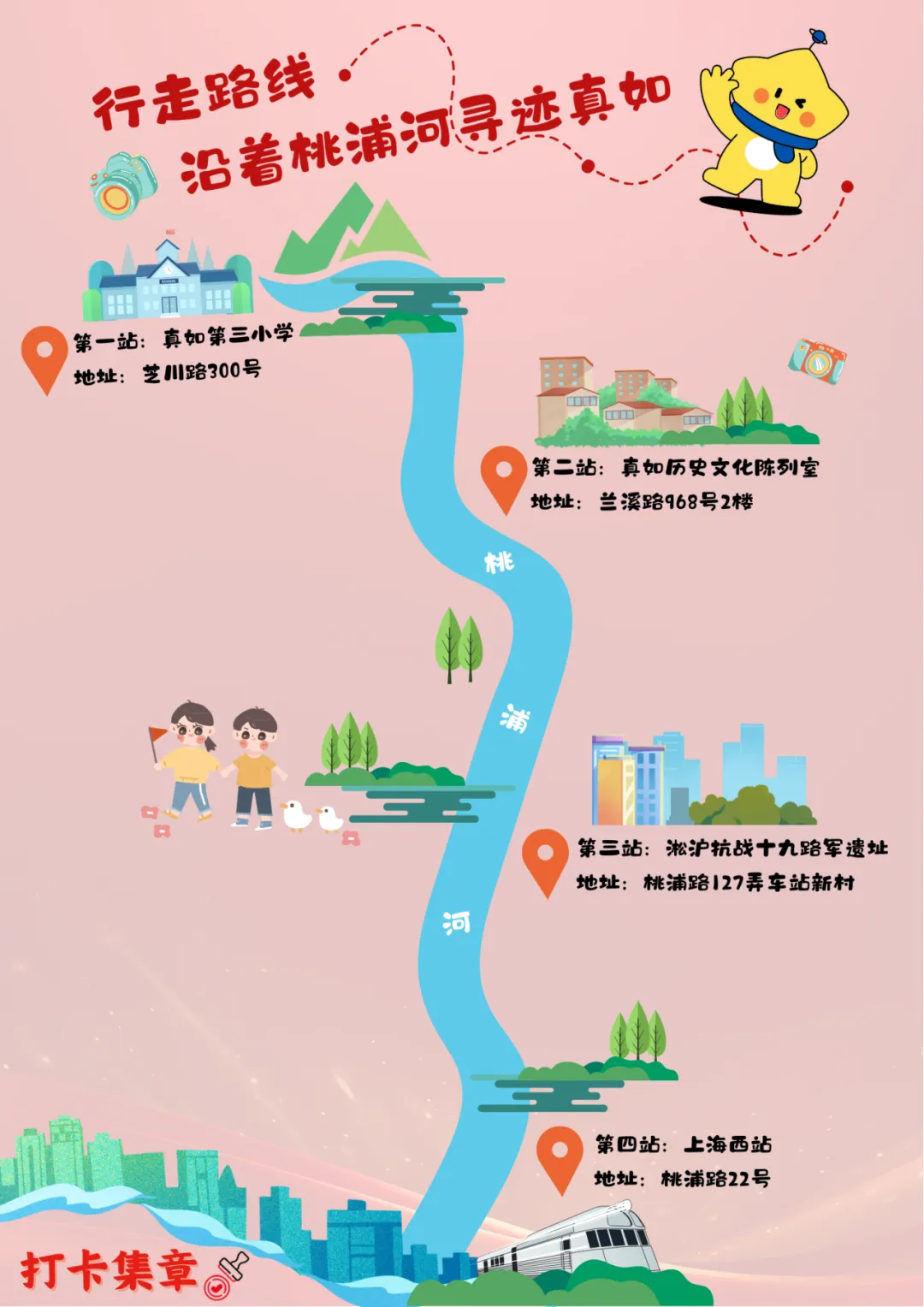 行走路线的起点,是坐落在芝川路300号的真如第三小学。这所桃浦河畔充满历史底蕴和教育温度的学校,始建于解放初期,前身为经堂民办小学,历经多次变迁后于1991年定址并更名为真如第三小学。如今,这座已有70多年悠久历史的校园,不仅承载了红色基因,更是传承了真如历史文化。