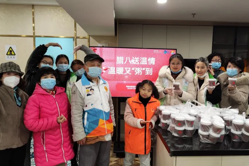 高陵党群服务中心的志愿者们一大早就精心熬制了香甜可口的腊八粥,打包、装盒、贴福字,一切井然有序。“爷叔阿姨,新春快乐!我们来给您送粥啦!”志愿者们分组出发,挨家挨户为孤老和独居双老家庭送上这份心意。
