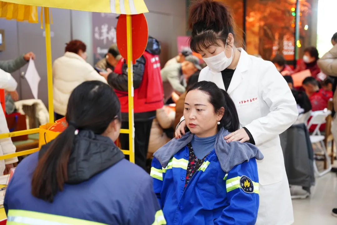 活动现场,围绕“医、养、防、美”四个方面为新业态新就业人群提供健康服务,摊位上人头攒动,上海万事和中医诊所医护人员现场提供血压、血糖随时测,快递、外卖小哥们轻松了解自己的身体状况;养生服务摊位上,上海老享为老服务中心的专业按摩理疗来助力,帮小哥们驱散身心疲惫;还有民生银行真如支行开展防诈宣传,提升大家的防骗“战斗力”;公益理发服务更是贴心周到,让大家新年新气象,清清爽爽过大年。