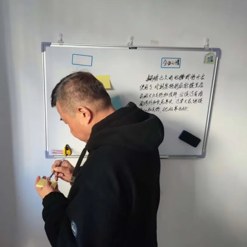 在十四号楼新电梯剪彩仪式上,80多岁的702室刘师傅难掩激动。旧梯停用、新梯未装的一个多月里,行动不便的他几乎未曾下楼,如今终于能平稳便捷地乘坐新电梯,还作为居民代表亲手剪彩。居民们自发在楼道留言板写下“终于盼来了!”“心里更踏实、更温暖!”等话语,字里行间满是喜悦与认可。