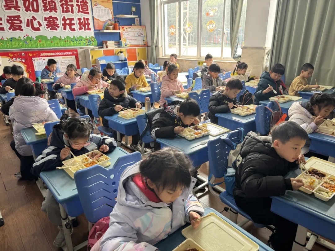 午餐时间,志愿者引导孩子们有序洗手后,分发午餐。营养均衡、热气腾腾的午餐保障孩子们的能量所需。餐后时段安排灵活,孩子们可自主完成寒假作业、阅读课外书籍或安静休息,做到劳逸结合,张弛有度。