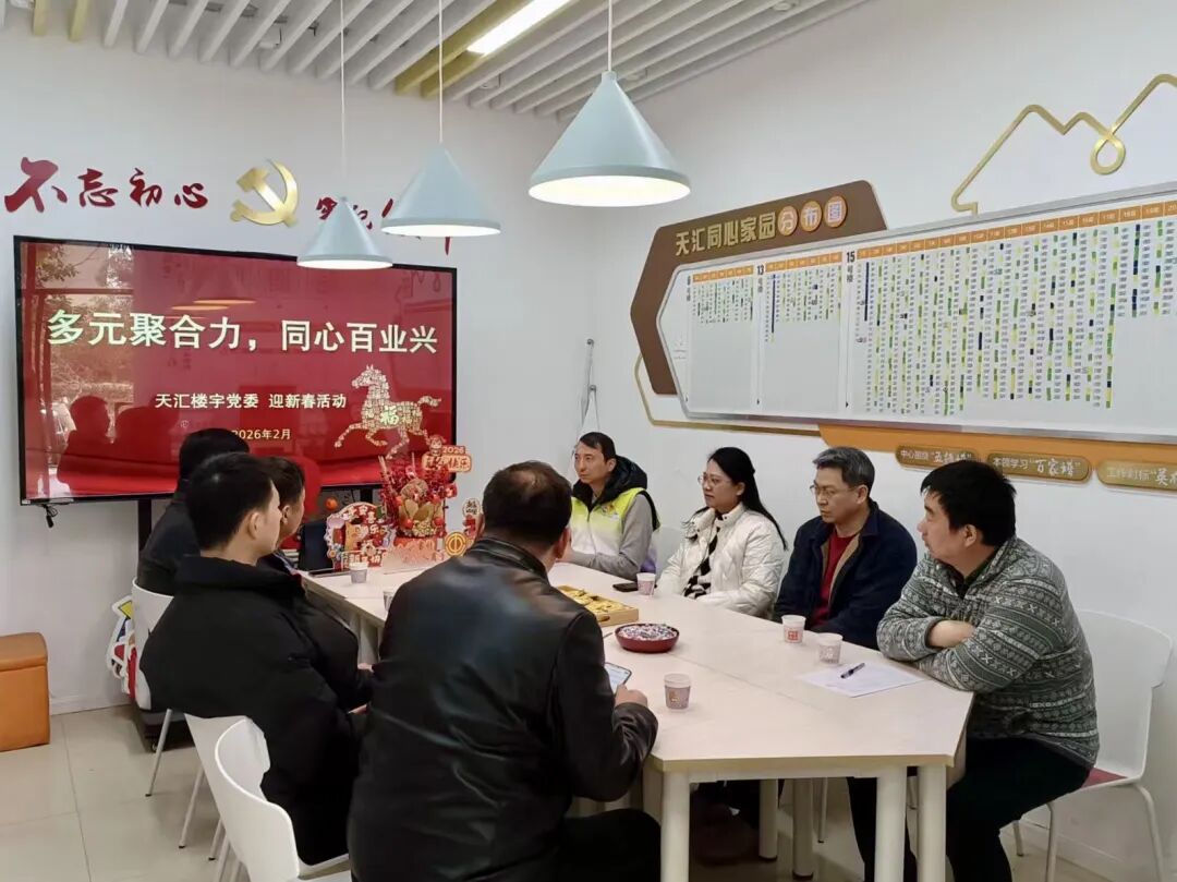 在天汇广场党群服务站,开展了一场别开生面的新春茶话会。与以往不同的是,这次围坐在圆桌旁的主角,既有快递小哥、外卖骑手等新就业群体与户外职工,还有部分楼宇白领和商户代表。
