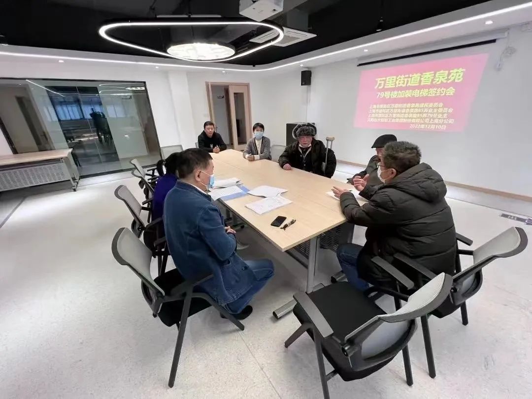 一部电梯能否加装成功,涉及很多方面,而居民的利益诉求、安装方式的协调是老旧小区加装电梯的“痛点”和“堵点”。香泉居民区工作人员、社区志愿者、加梯公司在社区党总支统一指导下完成了小区整体征询工作,深入了解老百姓的诉求和建议,并在征询中发现79号居民楼内既有耄耋老人,还有身体不便的居民,绝大多数业主有强烈安装意愿。为此居委会数次协调,为居民和加梯公司搭建共商共议平台,利用周末多次组织“沈阳远大集团公司”(以下称加梯公司)与居民开会协商,调整方案,加梯公司也结合实际需求不断优化方案。同时依托党建引领优势密切联系群众,牵头成立由小区党员志愿者组成的加梯自治管理小组。