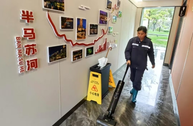 以目标为导向,强化驿站公厕管理。苏河驿站公厕日常管理实行“三个三”精细化管理模式。“三时段”保洁标准即“每日开关门时段各进行一次系统保洁、每隔2小时进行一次全面保洁、市民如厕后进行一次及时保洁”;“三化”贴心服务即为市民提供更加人性化、优质化、精细化的服务;“三类型”监管体系即将苏河驿站公厕管理纳入环卫作业服务考核体系、创城巩卫管理体系、文明行业创建考评体系。
