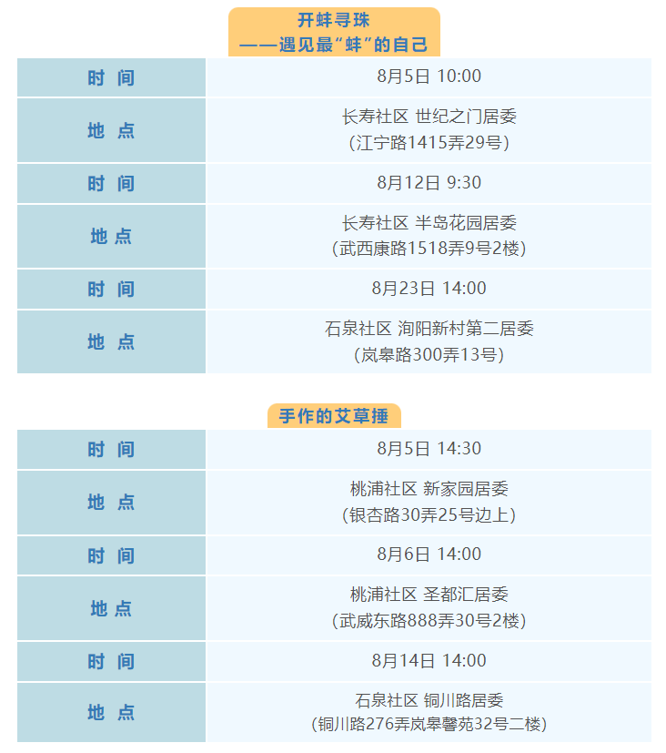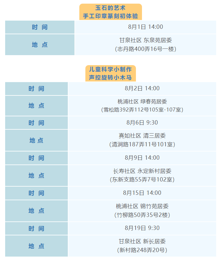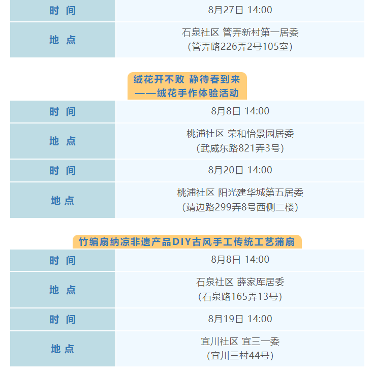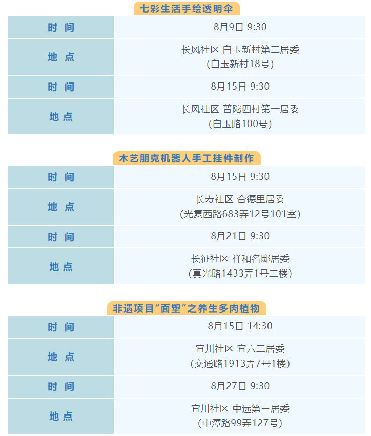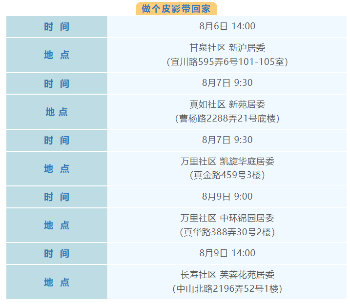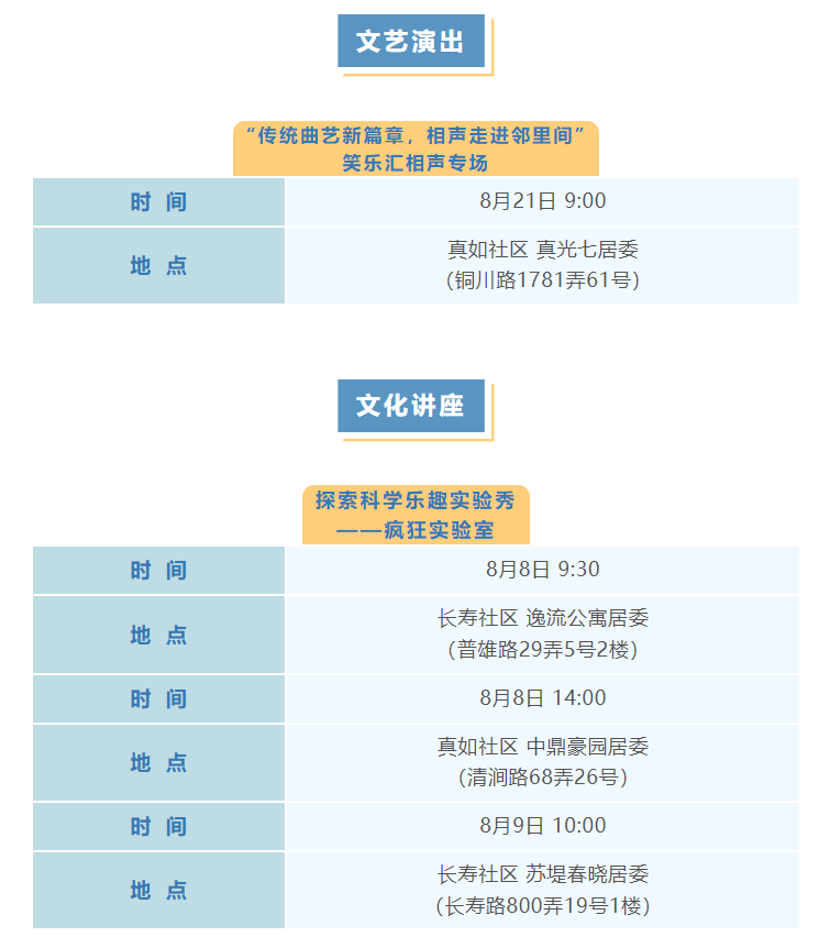 普陀区8月文化配送活动(区级配送)预告来啦!