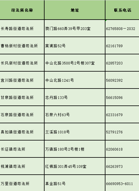 普陀区各街道镇基层司法所