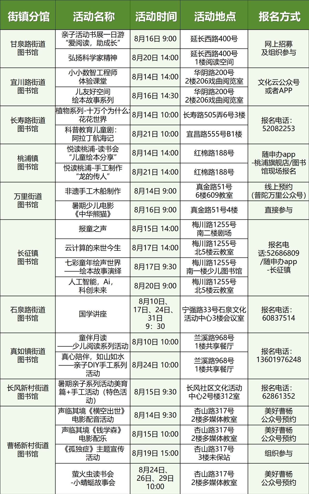 2024上海书展期间普陀区各街镇分馆也准备了丰富精彩的活动,一起先睹为快!