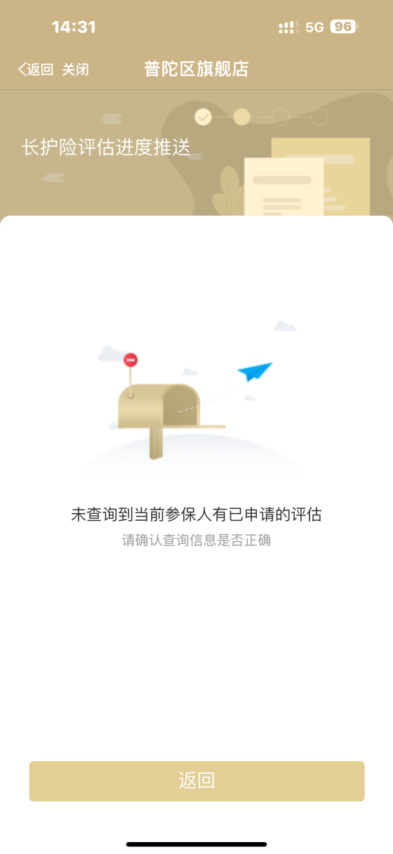 ⑧若老人不是在普陀区社区受理点提交评估申请的、未申请或申请未通过审核的,“长护险服务一件事”将反馈无法查询到老人的评估信息