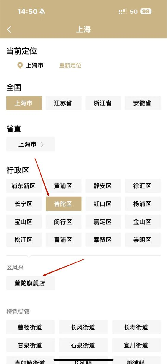 ①登录“随申办APP”首页搜索框直接输入“普陀旗舰店”搜索或者搜索框点击“上海”-找到“普陀旗舰店”点击,均可进入普陀区旗舰店主页