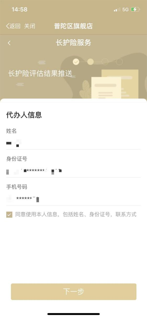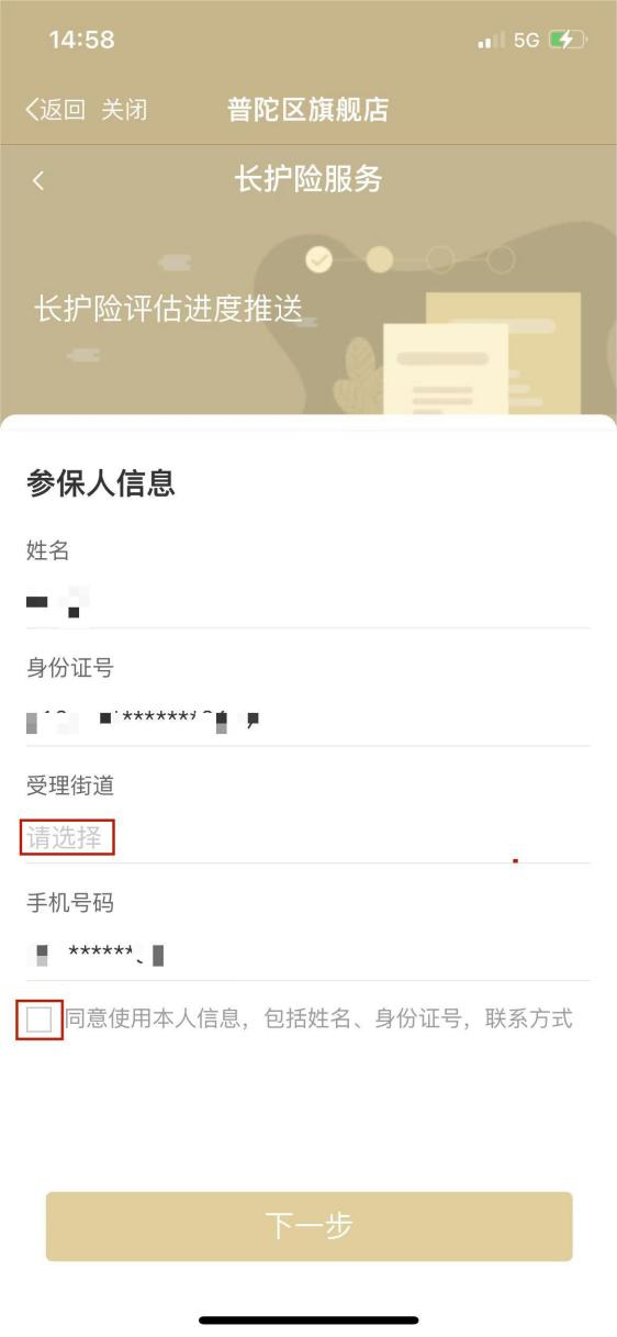 ⑥进入个人信息验证页面,勾选同意个人信息使用授权后,点击“下一步”,“本人查询”时,若存在评估信息受理街道会自动匹配,无需手动选择