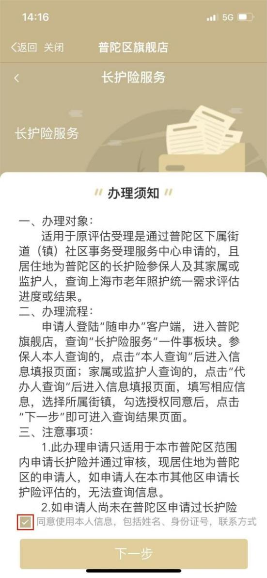 ③请先翻阅办理须知,勾选同意个人信息使用授权后,点击“下一步”