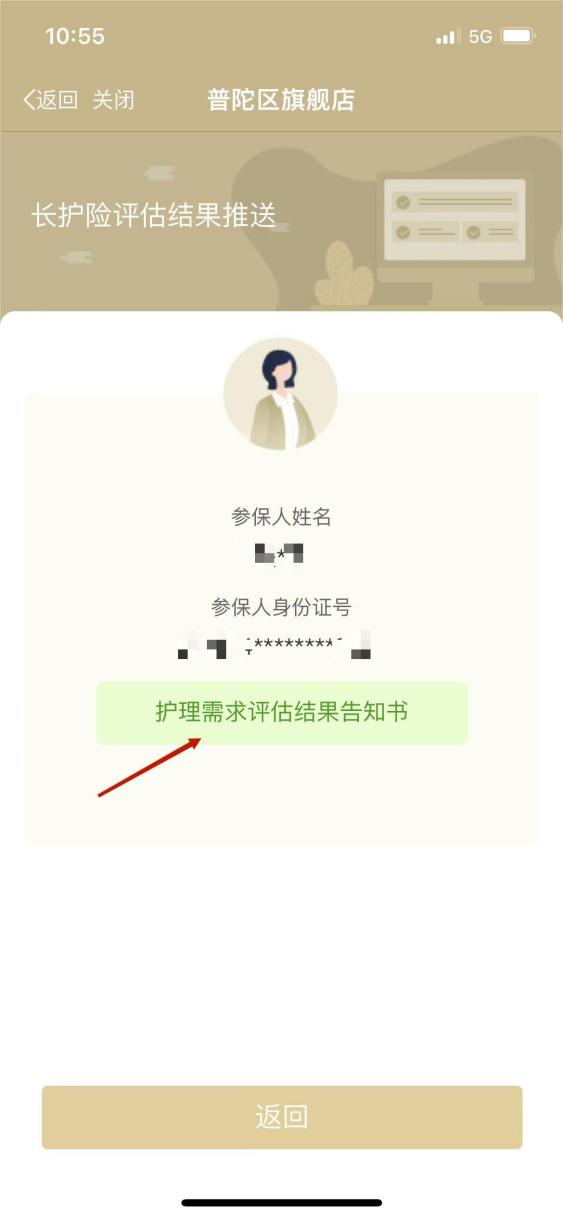 ⑩“长护险评估结果推送”查询结果可展示参保老人的电子版《护理需求评估结果告知书》