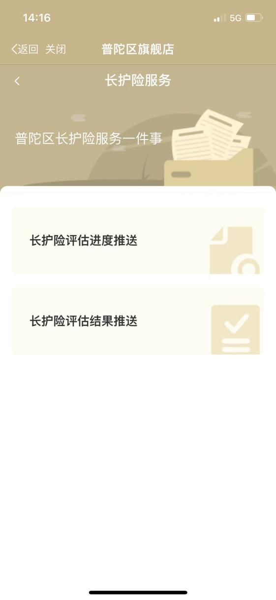 ④进入“普陀区长护险服务一件事”后,用户可根据自身咨询需求,选择对应的评估“进度”或“结果”推送服务