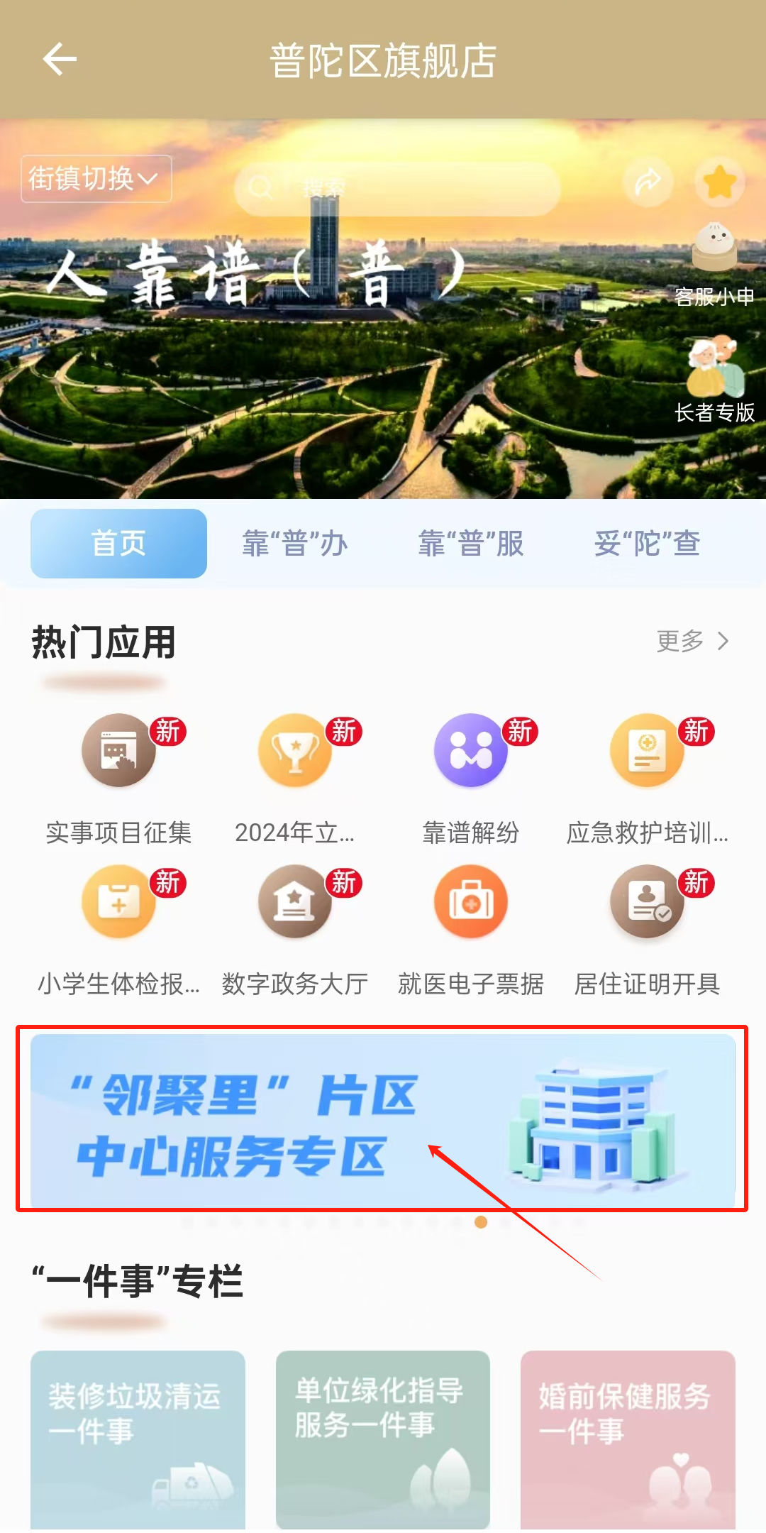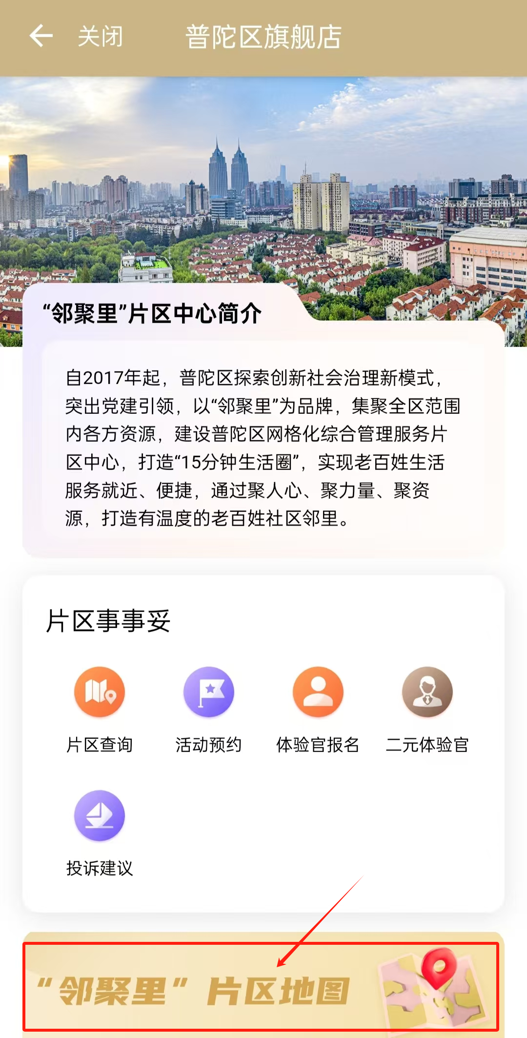 第二步:点击“邻聚里”片区中心服务专区,进入相应页面