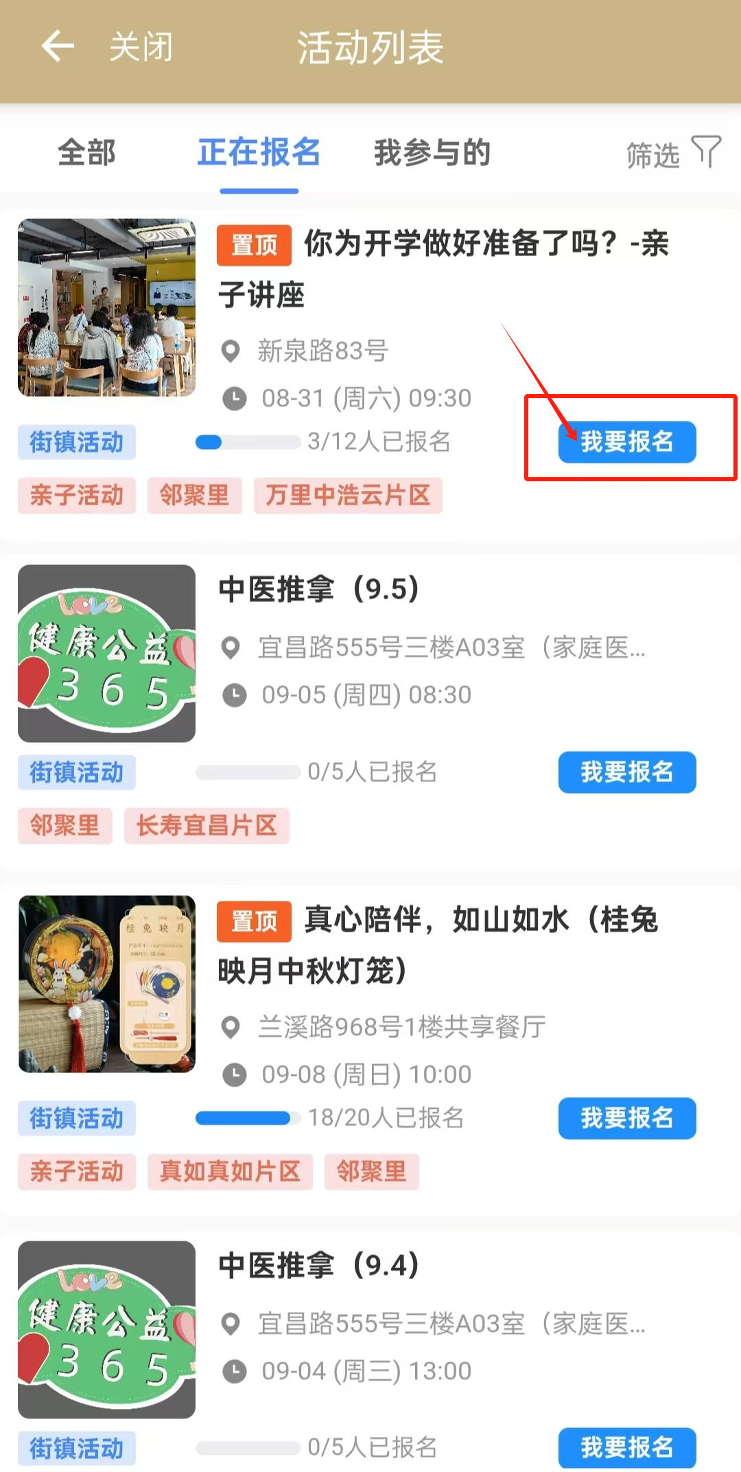 来源: 上海普陀普陀居民看过来!平日想参加活动?却不知道去哪里报名?快上“随申办”普陀旗舰店!小编教你玩转“邻聚里”片区中心服务专区!