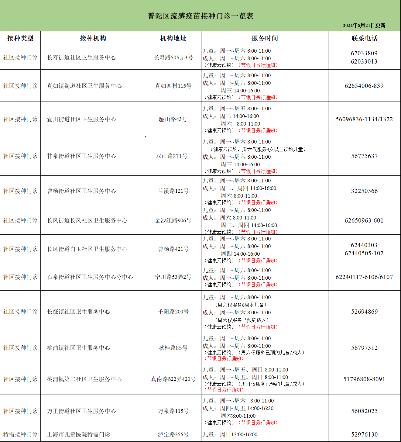 新一季流感疫苗到货啦,6月龄及以上人群都可接种!普陀居民快收藏这份信息汇总吧!