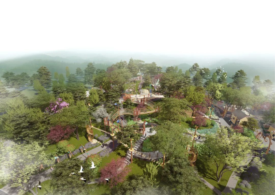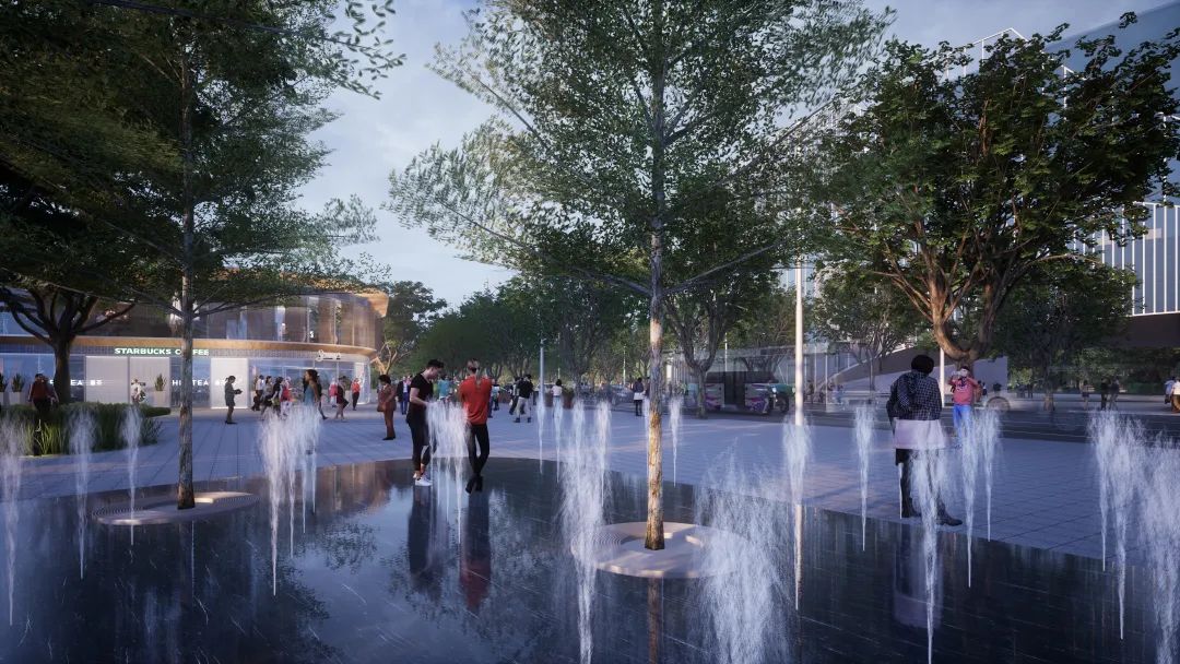 树阵、旱喷广场和公园服务建筑