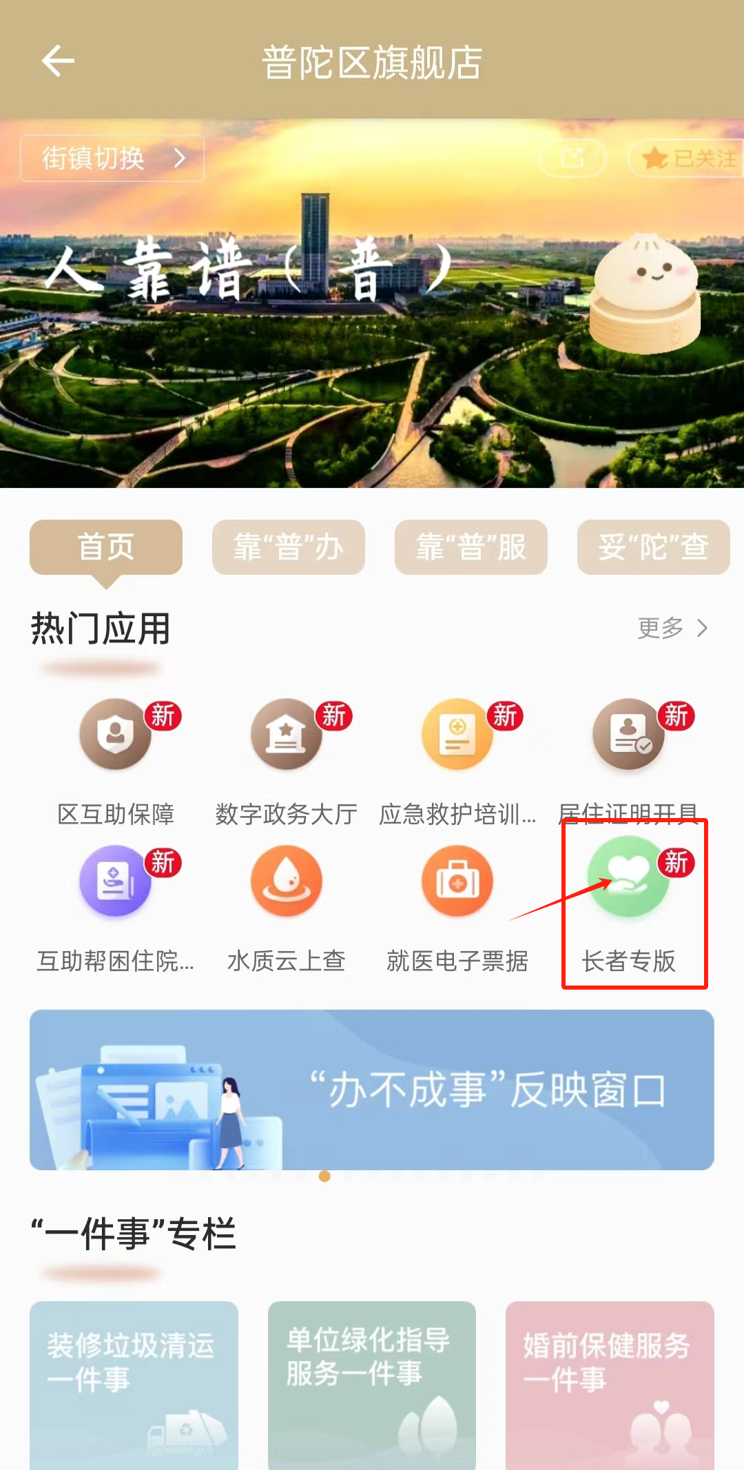 打开“随申办”APP,进入“普陀旗舰店”