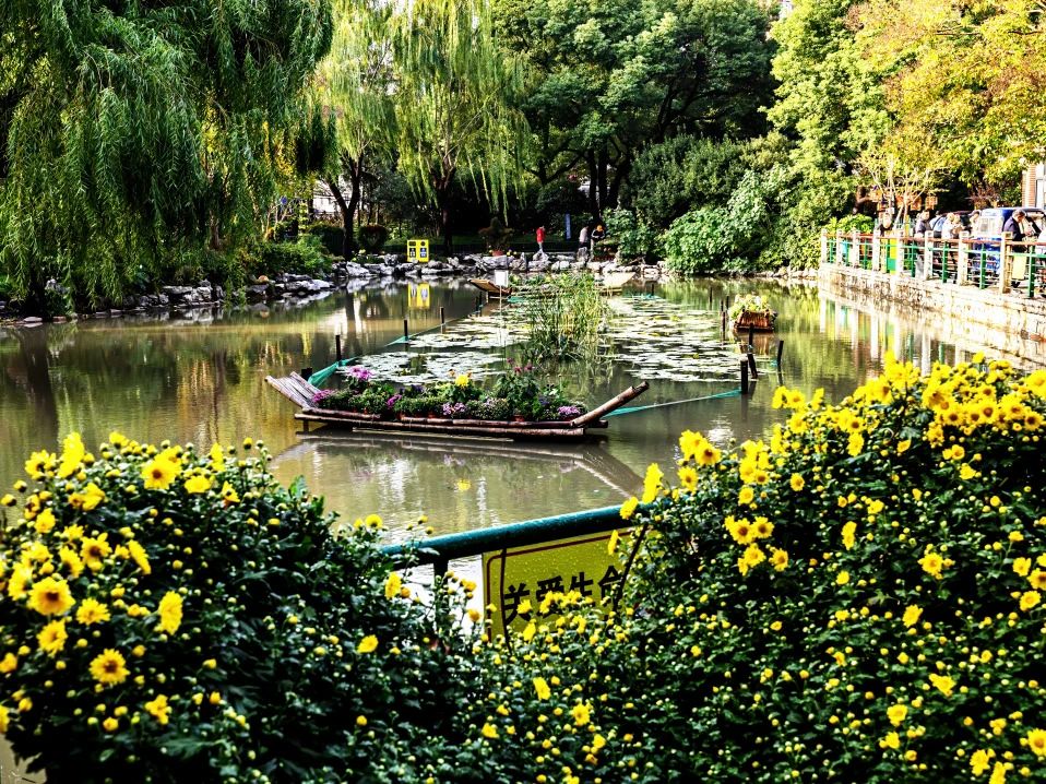 在公园出入口、河道周边、湖面、广场以及道路两旁布置各类造型菊,包括塔菊、球菊、悬崖菊、菊花柱、造型孔雀菊等,方便游客驻足观赏留影。沿河驳岸,间隔布置悬崖菊软化驳岸硬化感,并点缀各类大型造型菊丰富沿岸景观;湖面荡漾菊花浮床,道路两旁绿化带内种植品种菊增添色彩并营造氛围,让游客充分感受到菊花各种表现形式带来的美感,并在游园过程中达到移步异景之感。
