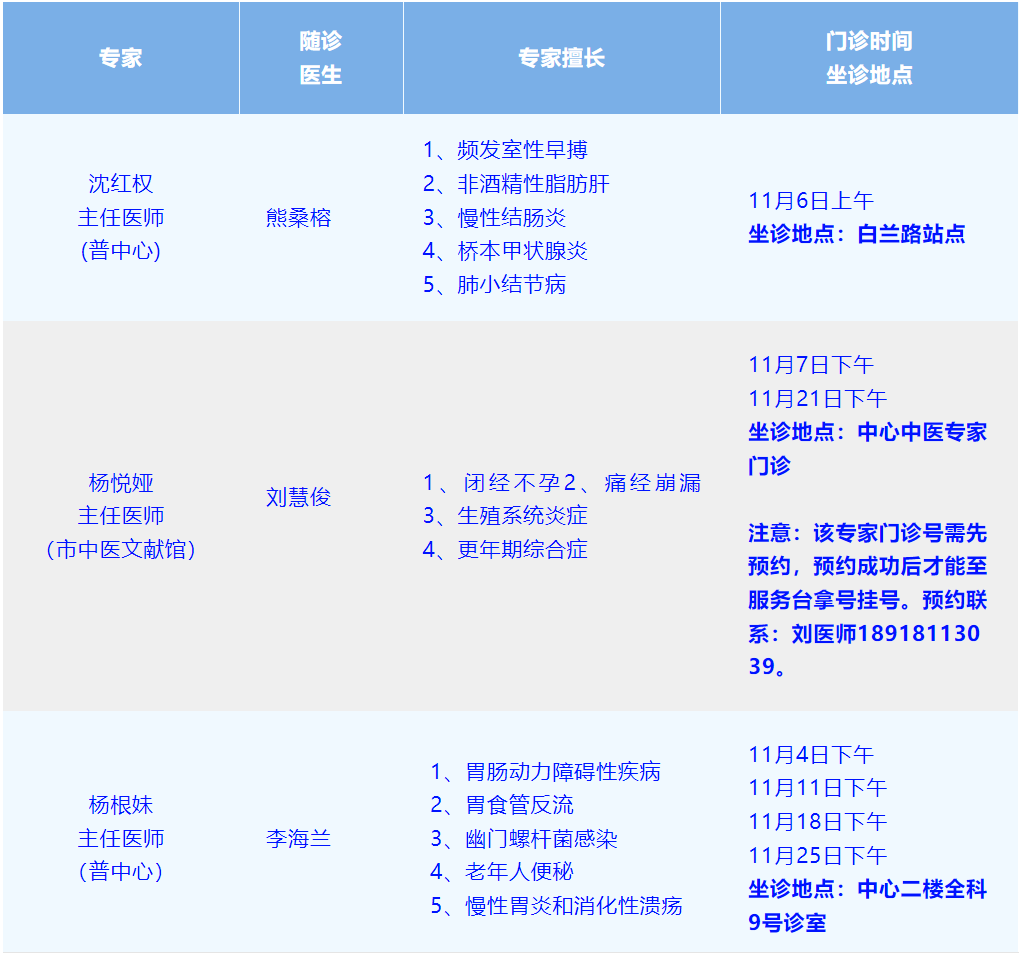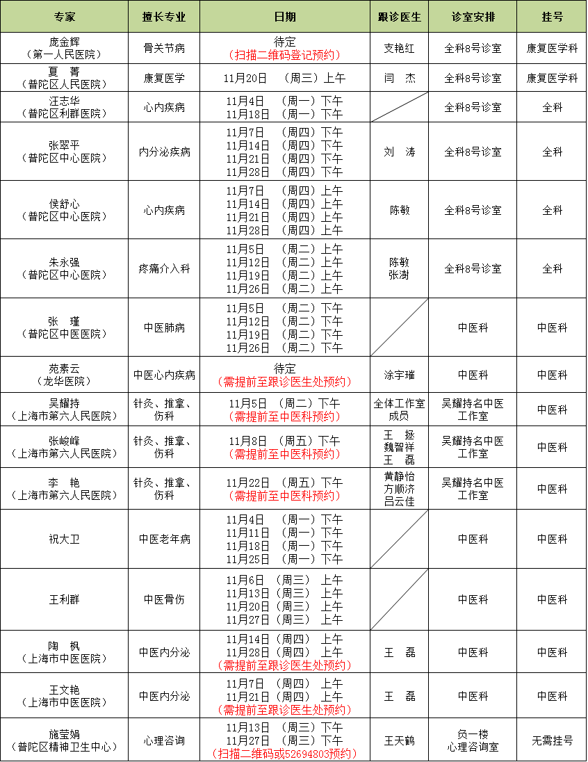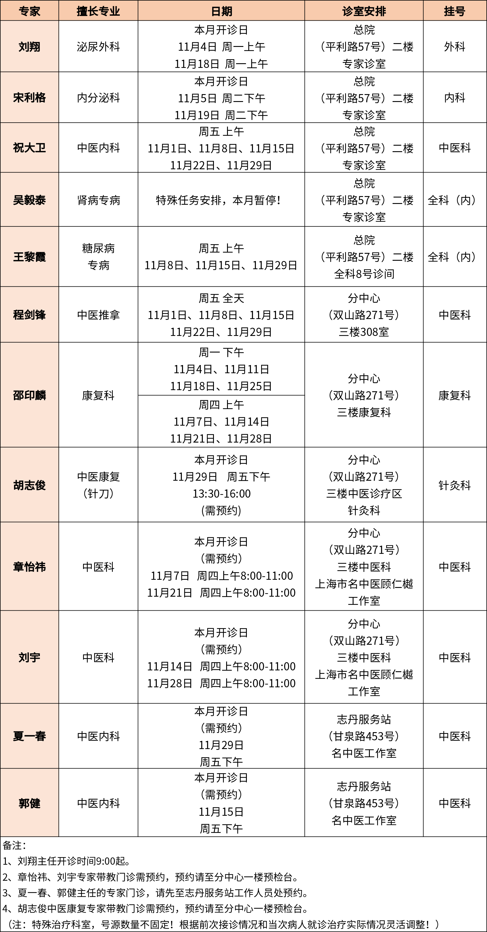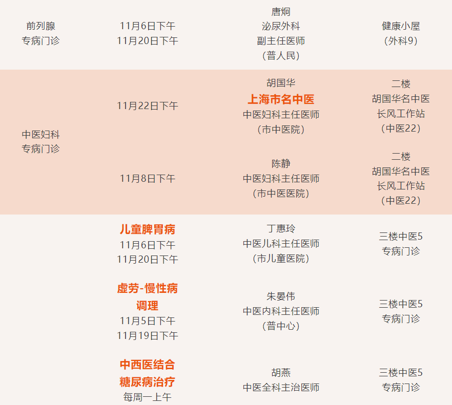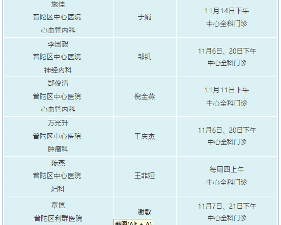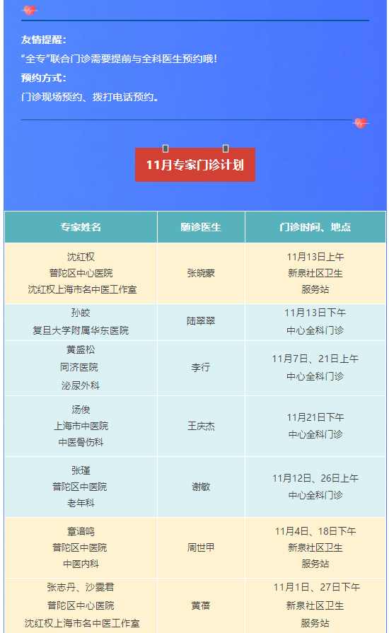 “家门口”就能看名医!普陀11月专家门诊安排来啦 2024年11月06日