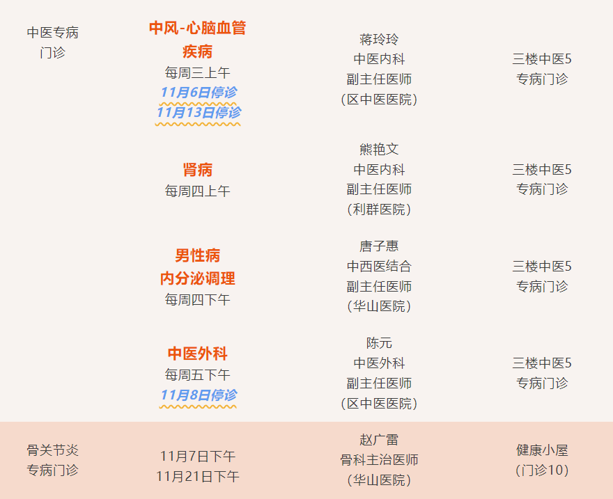 1、门诊以当天实际情况为准,特殊情况如有变动,敬请谅解。