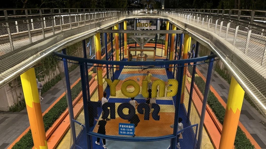这座艺术高线公园,自上而下地分为三层,纵向绵延约一公里,设有滑板区、篮球场、漫步道等多个功能区,满足不同年龄与兴趣的需求。漫步于公园的小径上,两侧的水杉树在微风中轻轻摇曳,为都市人辟出一片静谧绿洲。