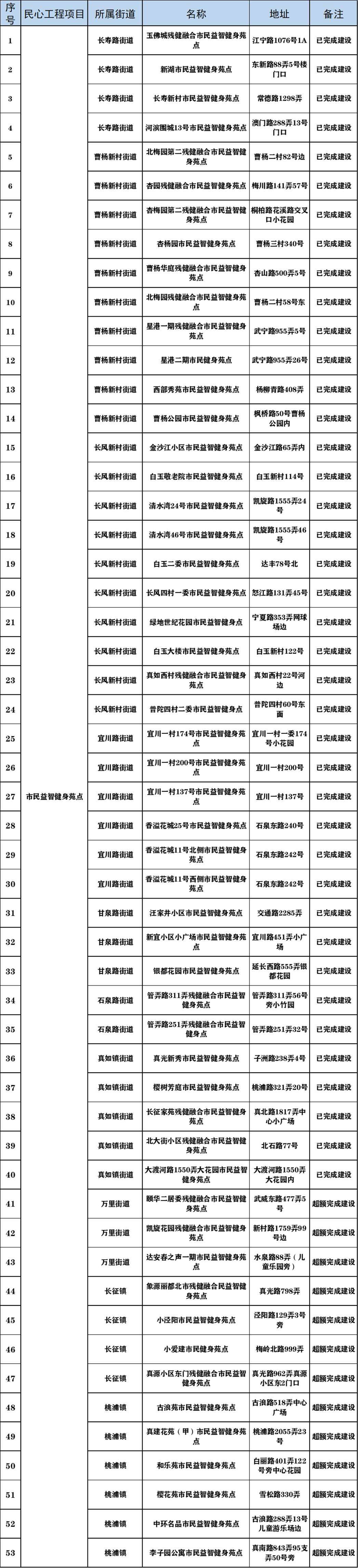 市民益智健身苑点53处