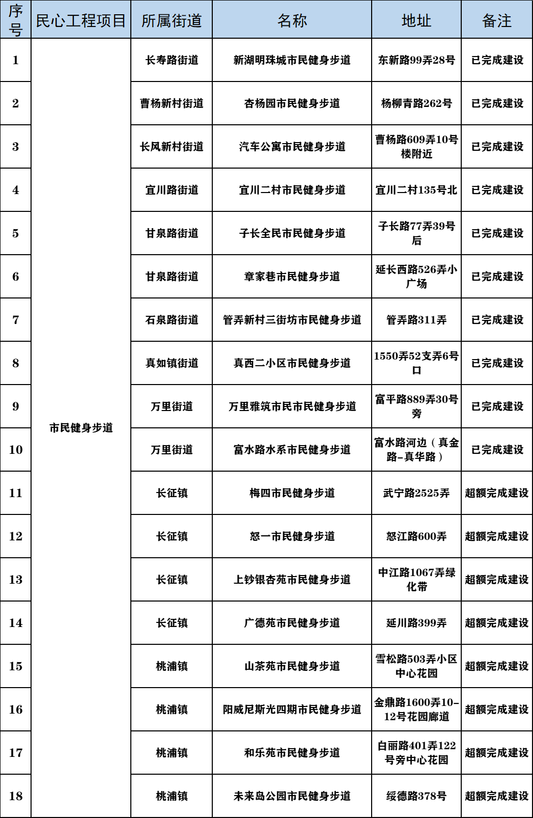 市民健身步道18条