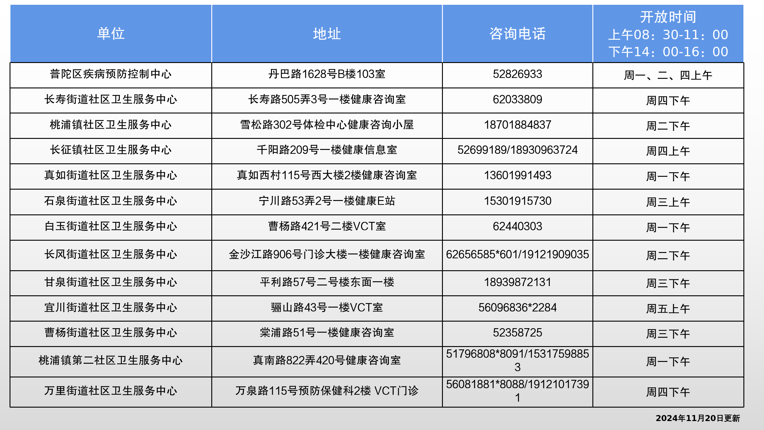 可检测可预防!普陀区各艾滋病自愿咨询检测门诊(点)信息汇总来啦 2024年11月21日