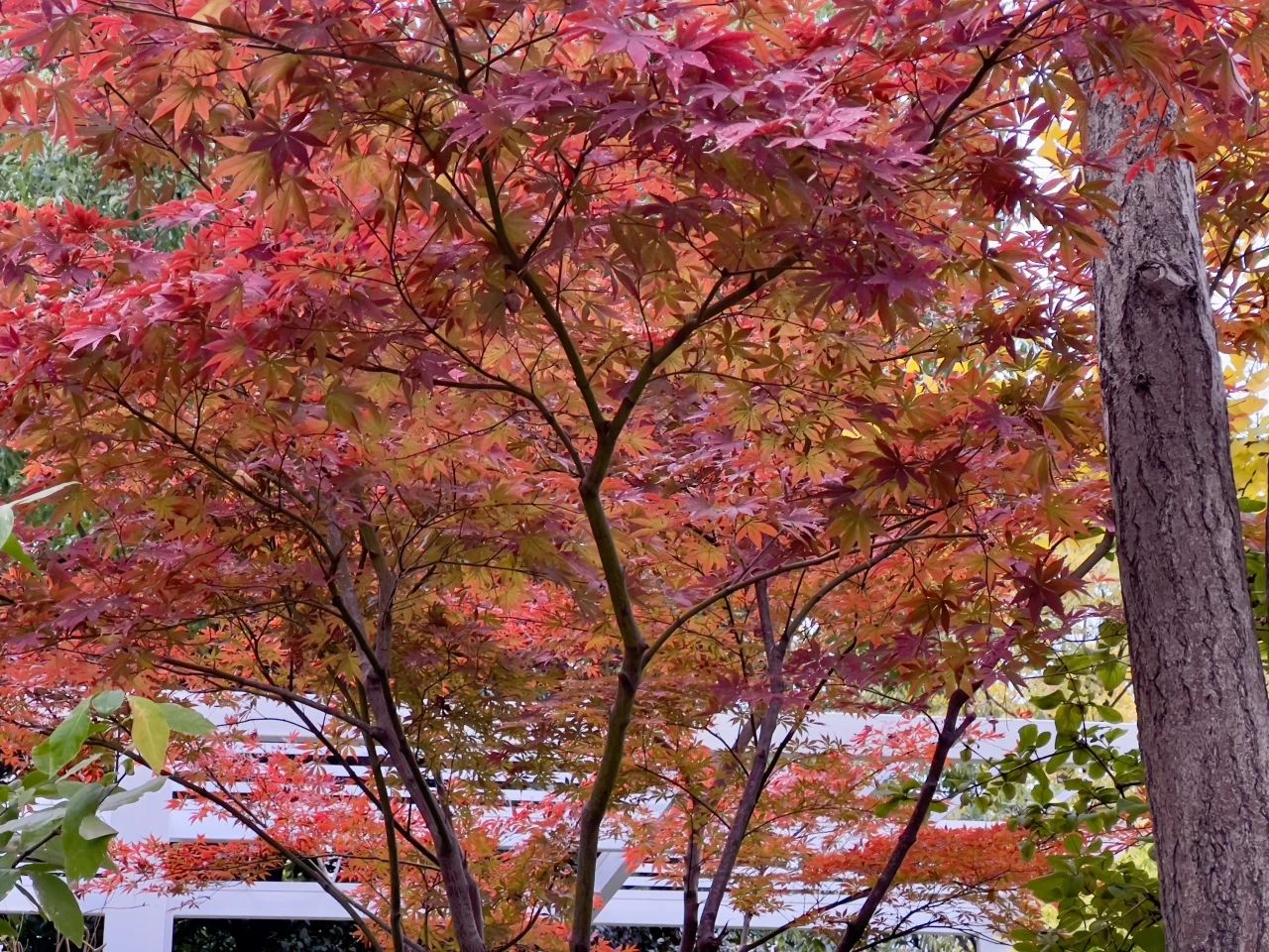 秋天,槭树的叶子会变成极为艳丽的颜色。有的槭树品种叶子会变成火红,如同燃烧的火焰;有的则变成橙黄色,像是天边的晚霞。