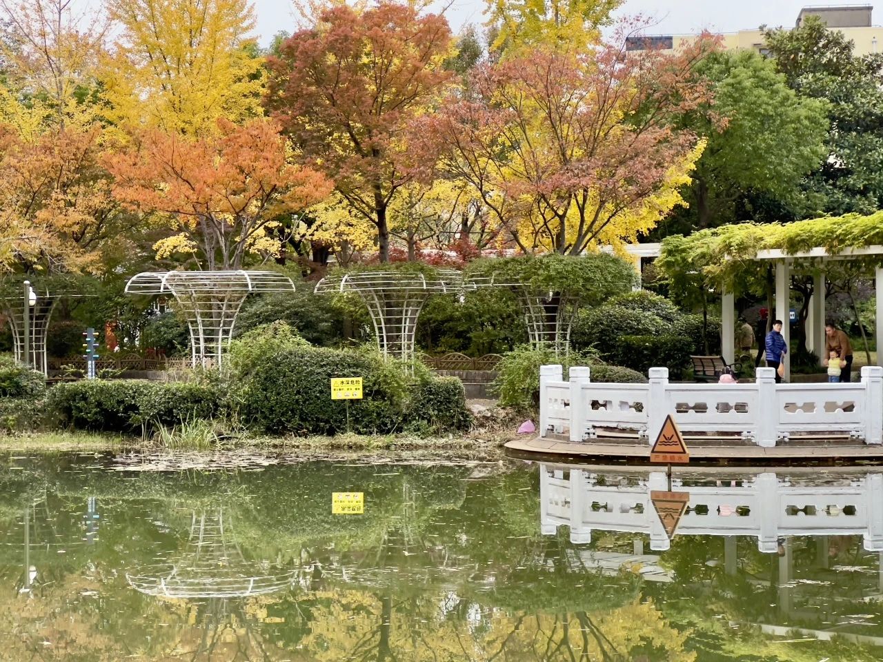现在,这里的色叶树为公园增添了一抹亮色,在这里,你可以静下心来,感受宁静与美好。